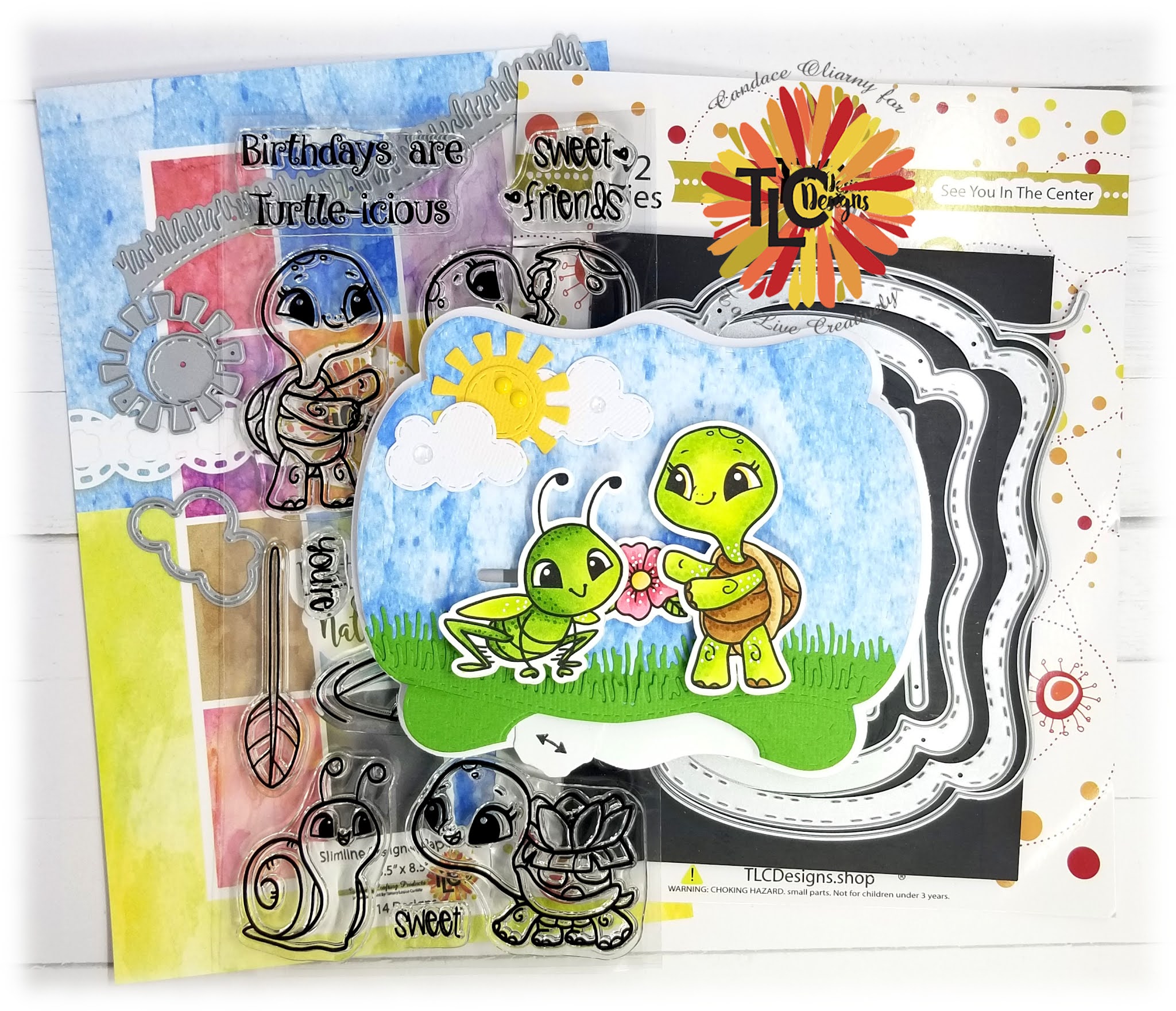 Today I am showing a card I made using Turtle-icious, Watercolor Naturals Paper, See you in the Center Die, Land and Sea Dies, Aztec Sunshine Die, Troll Cricket Fun and Action Stamps.